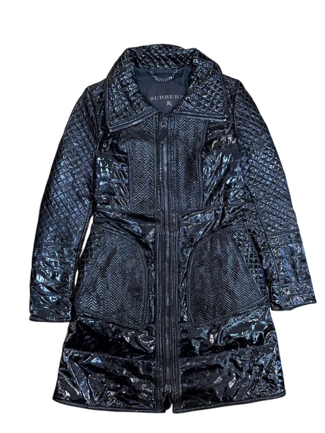 Burberry prorsum black patent leather quilted coat
