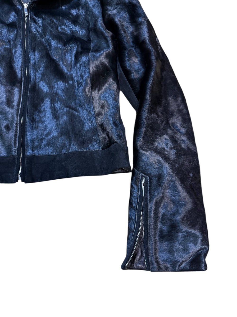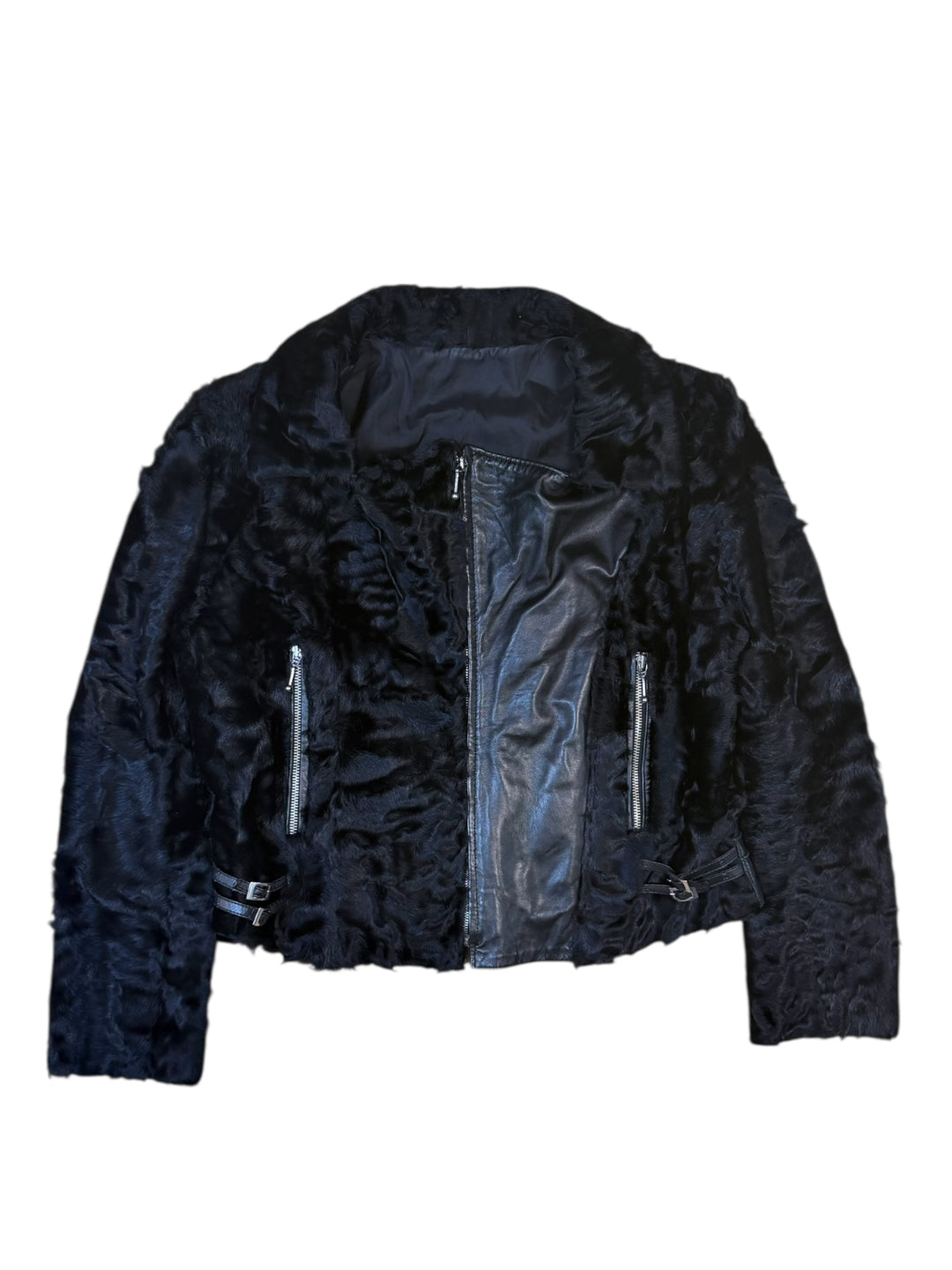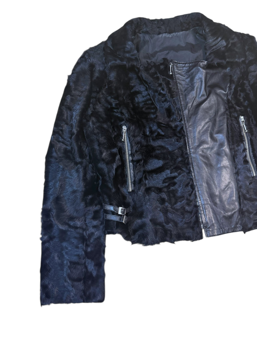 2000s black pony-hair biker jacket