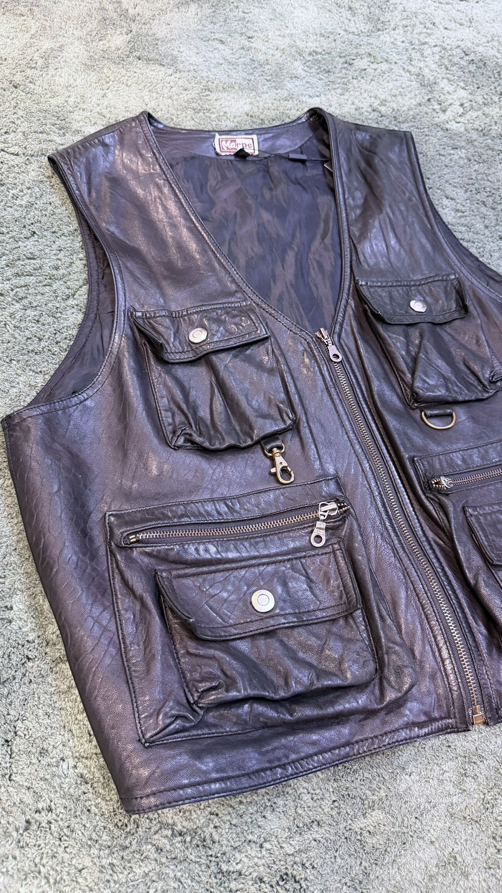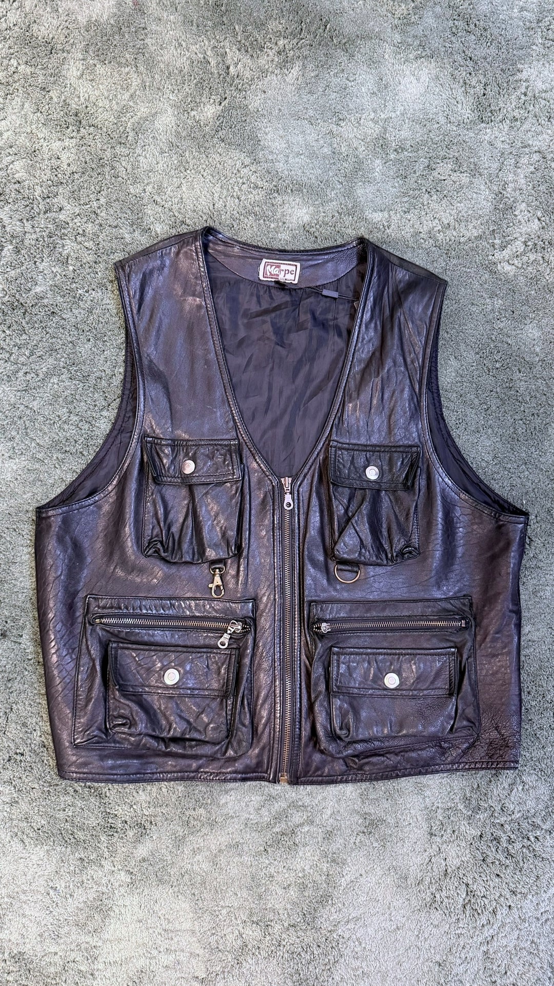Vintage black leather utility vest men’s extra large
