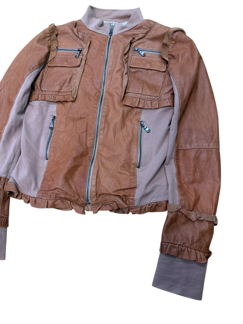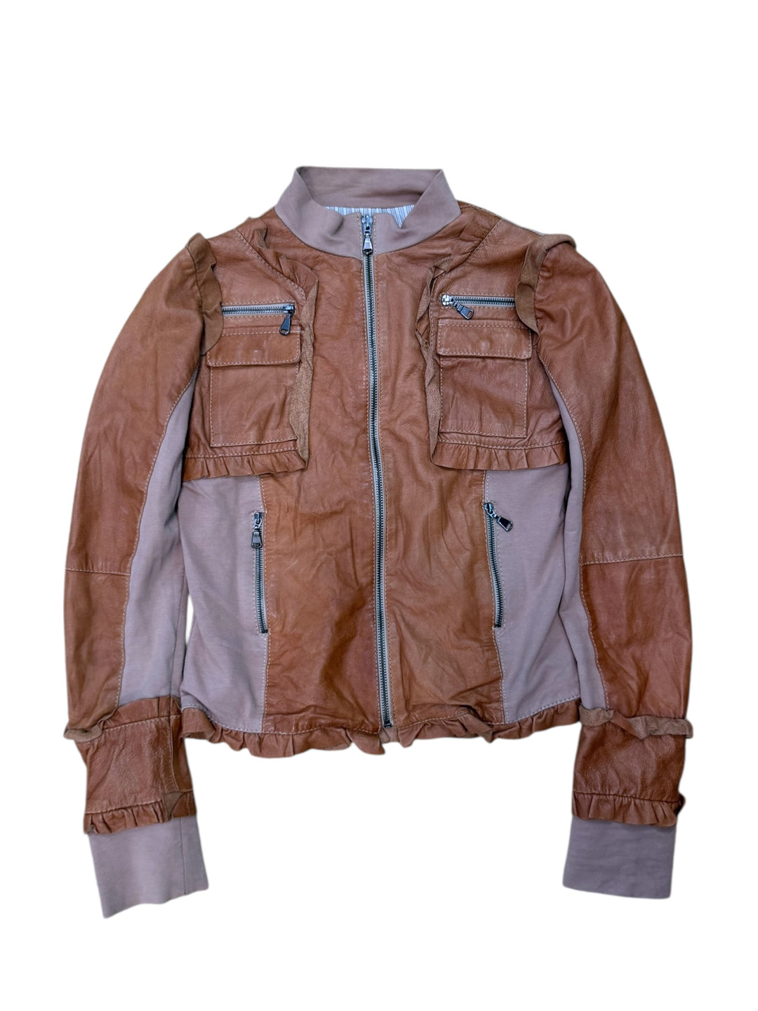 Vintage leather ruffle utility mix jacket small