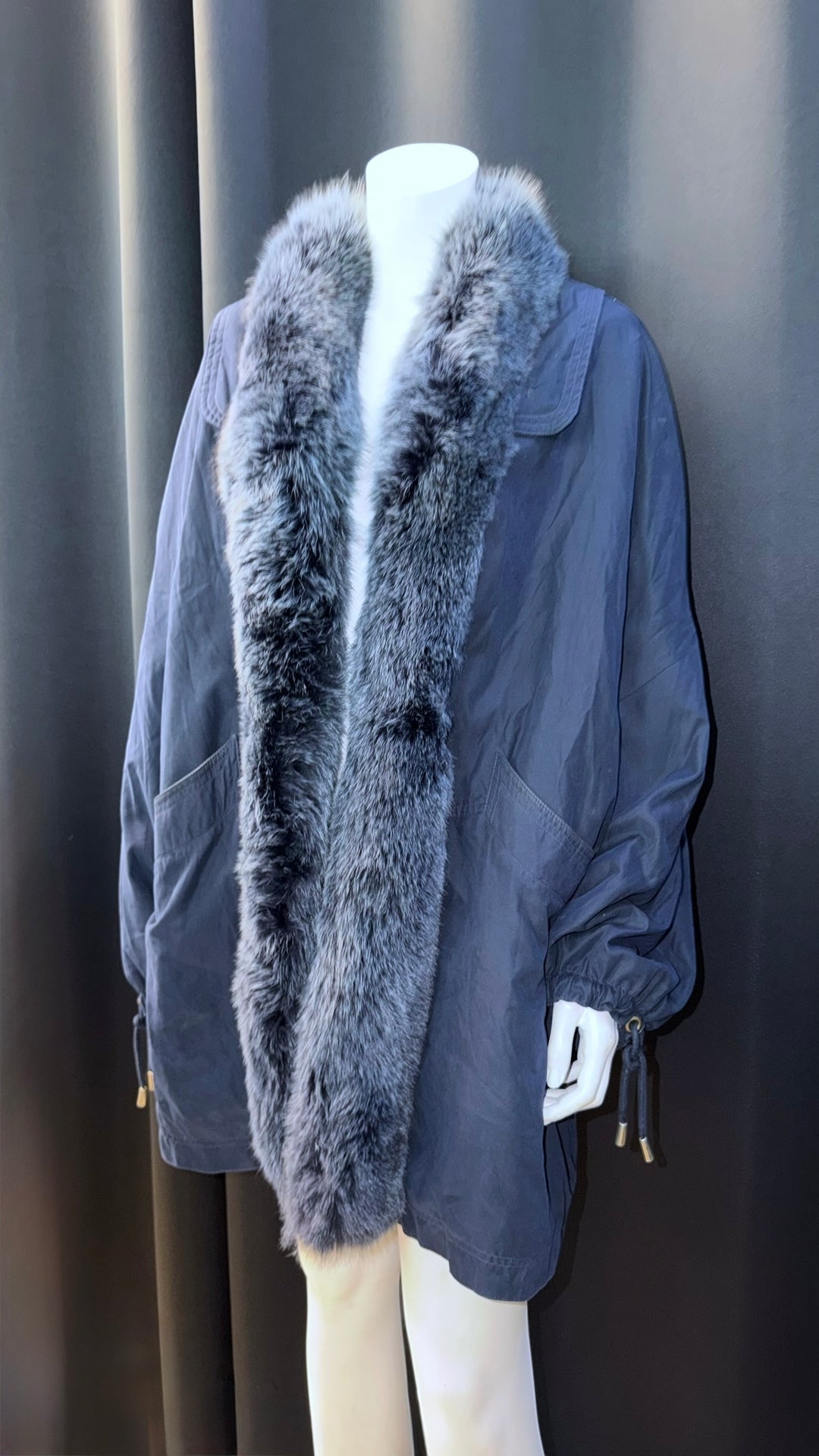 Bertoletti Roma vintage fur-trim navy oversized coat large