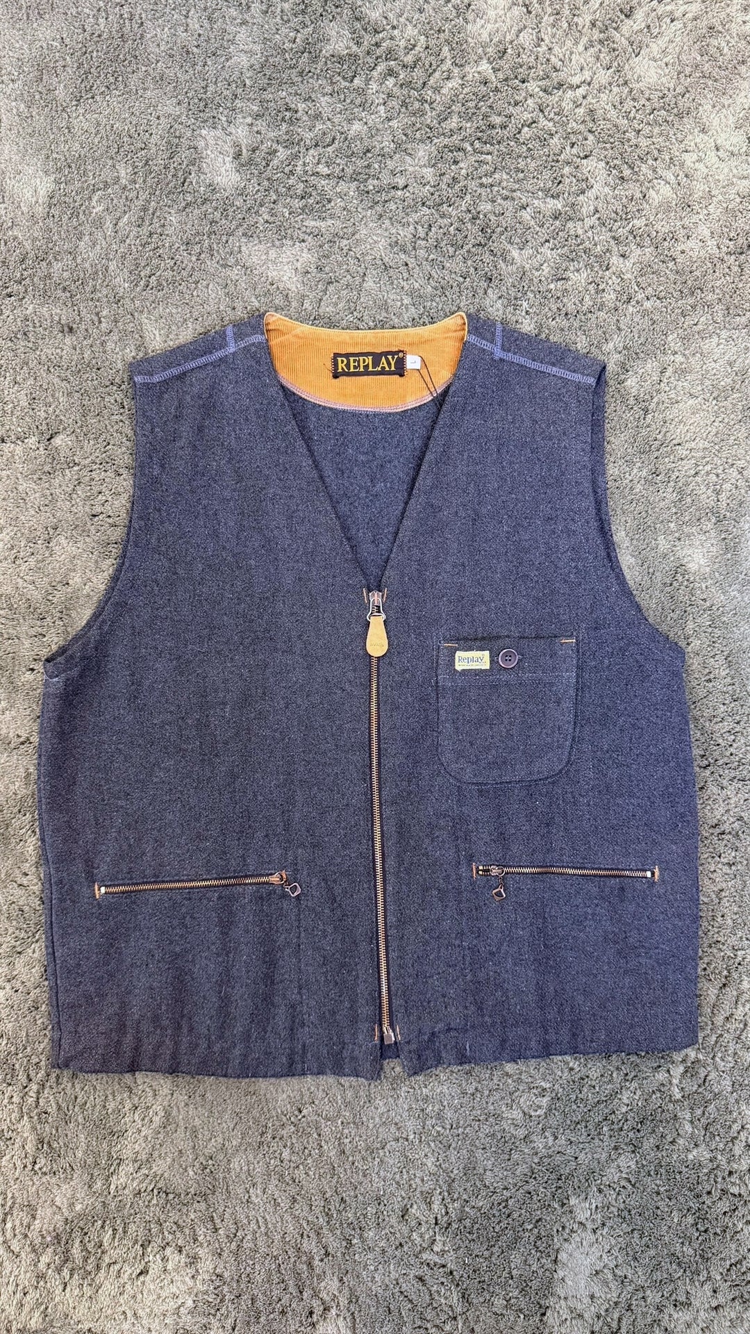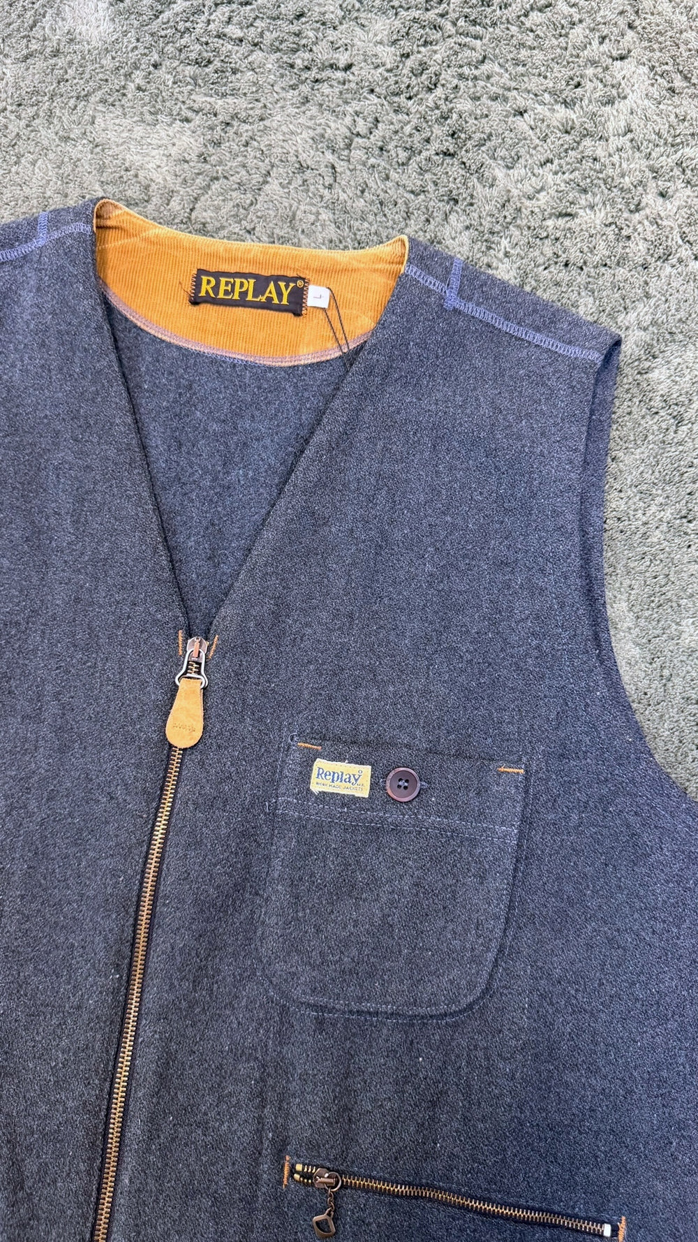 Replay vintage wool zip vest large
