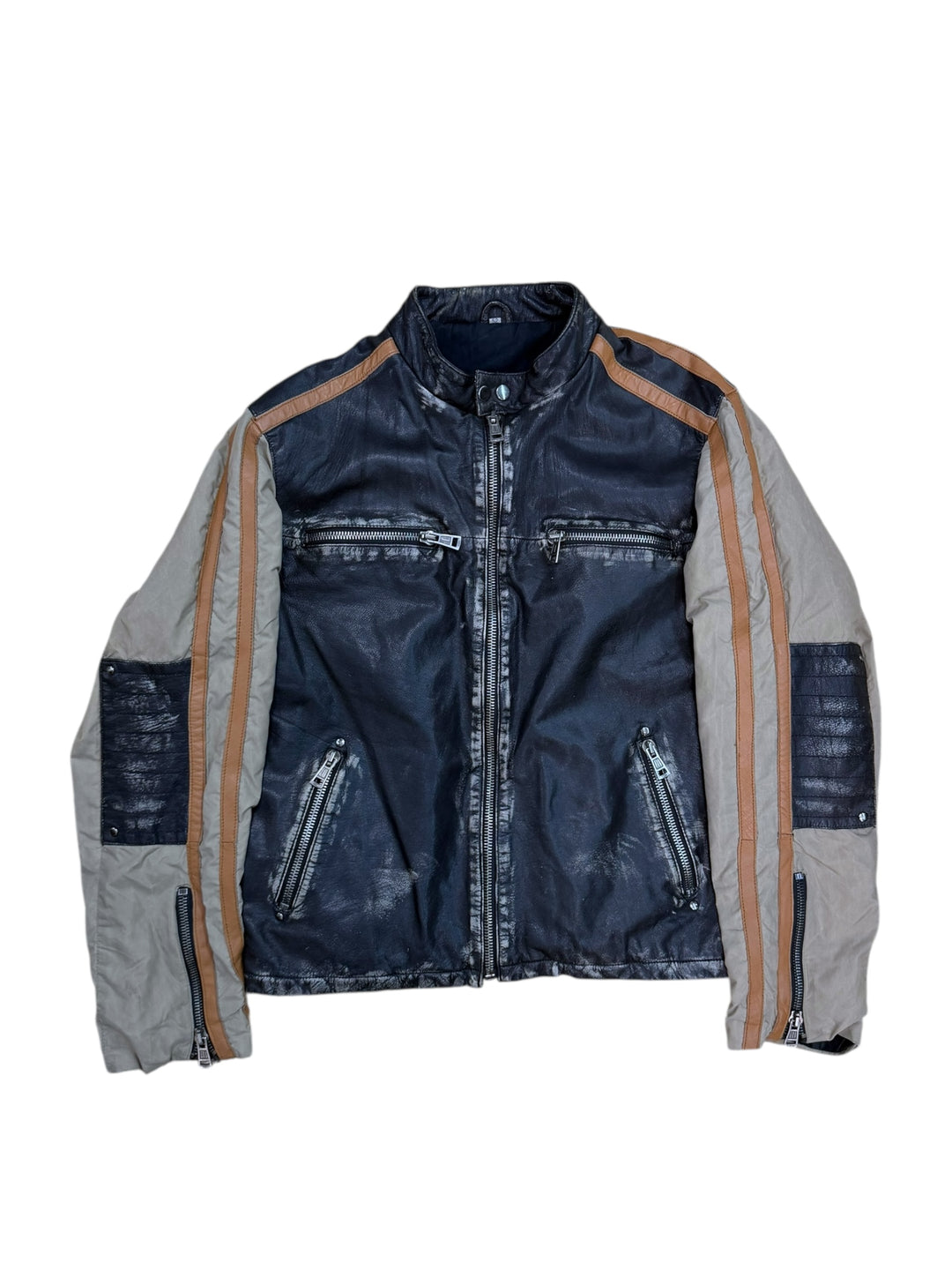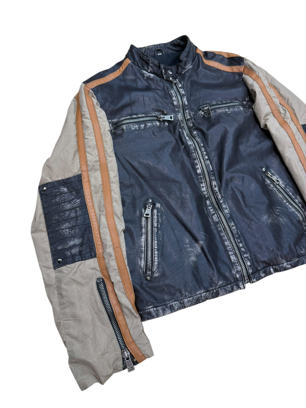Vintage leather colorblock biker jacket l-xl