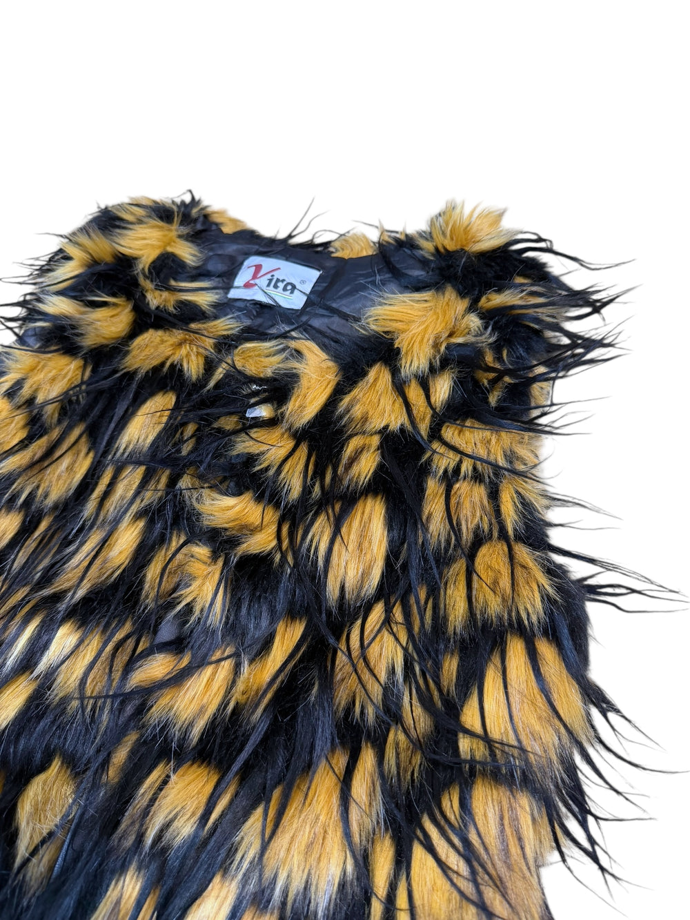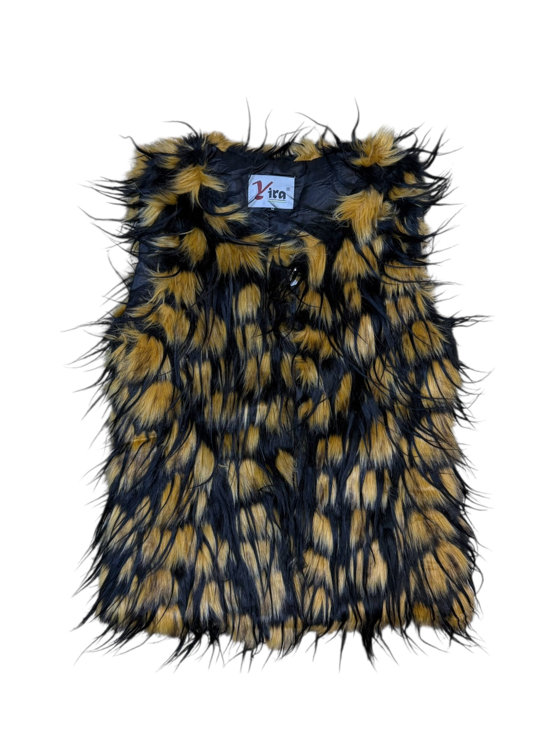 2000s faux fur vest | black & honey mix, oversized texture