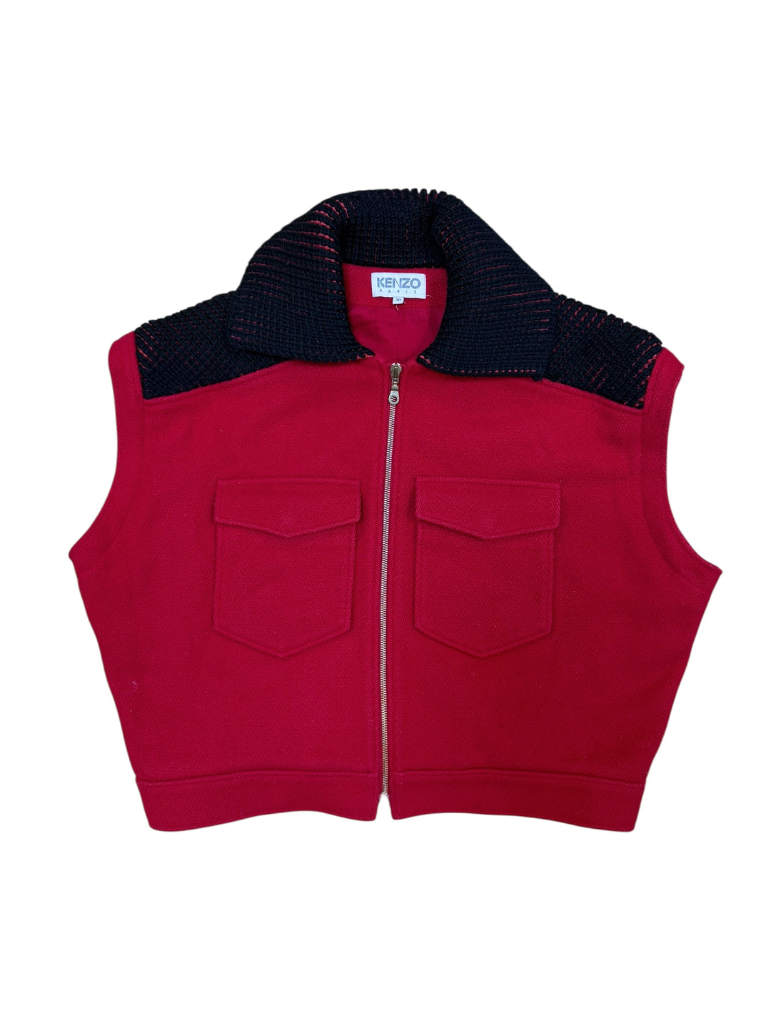 Kenzo Paris wool & cashmere knit collar zip vest