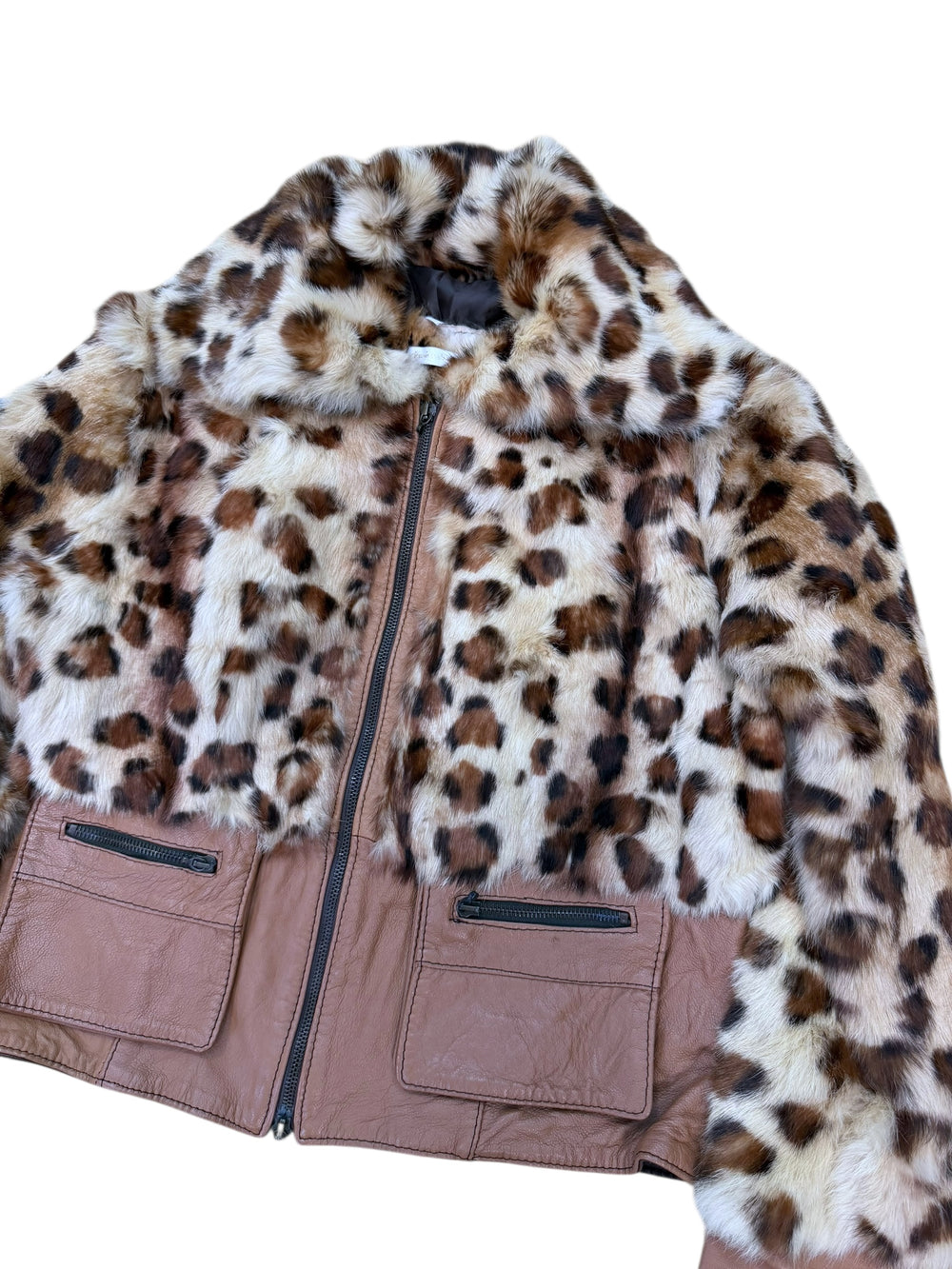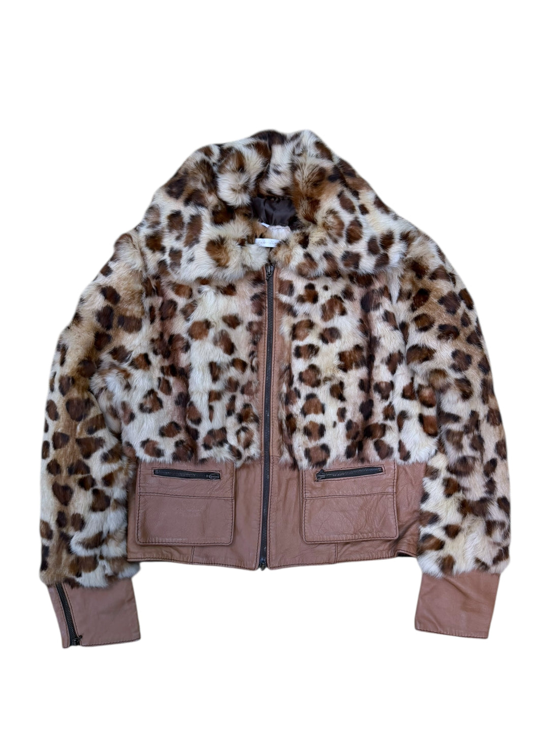 Italian leather & leopard fur cropped jacket medium