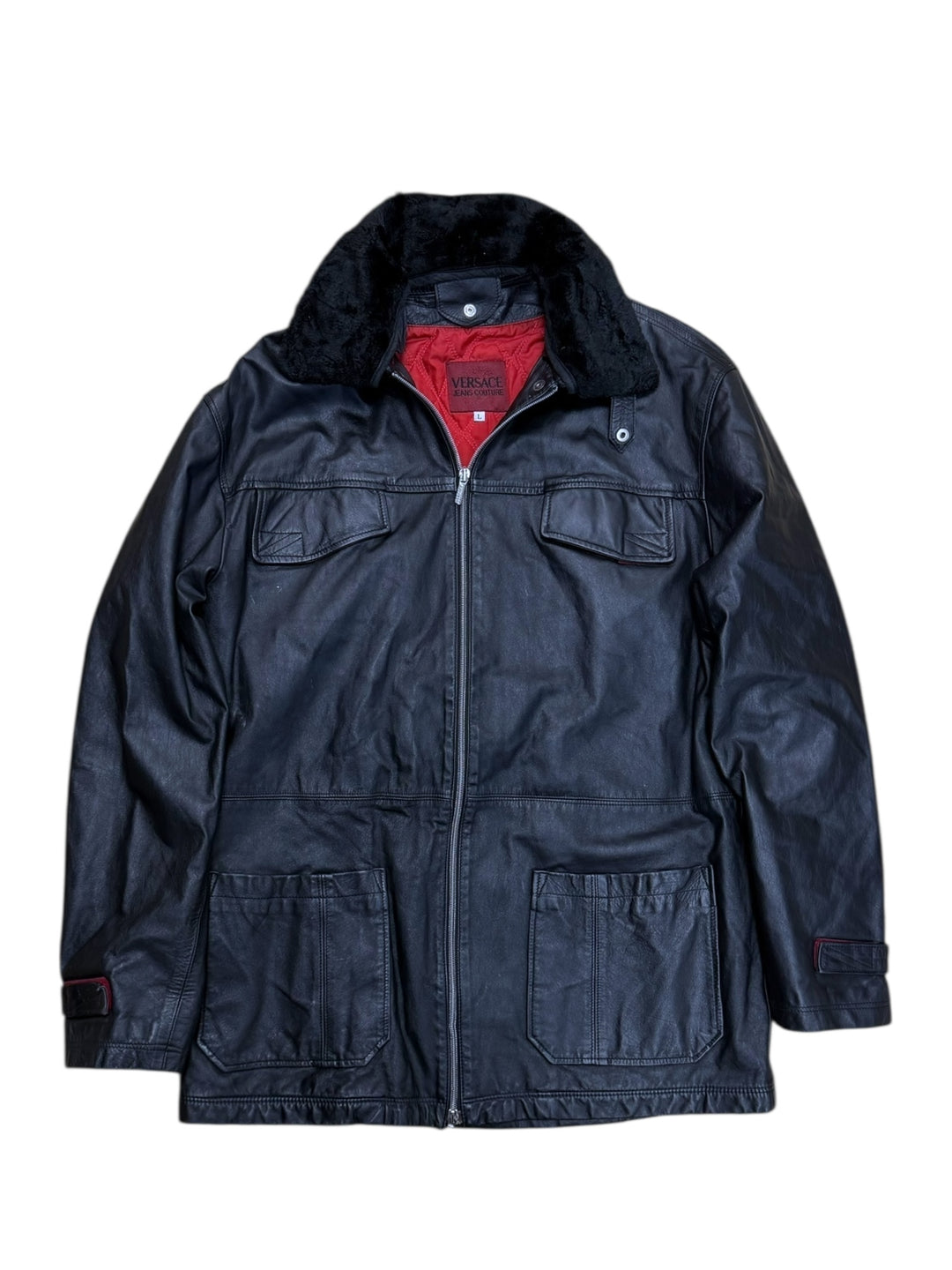 Versace Jeans Couture ‘Biker Utility’ black leather jacket men’s large