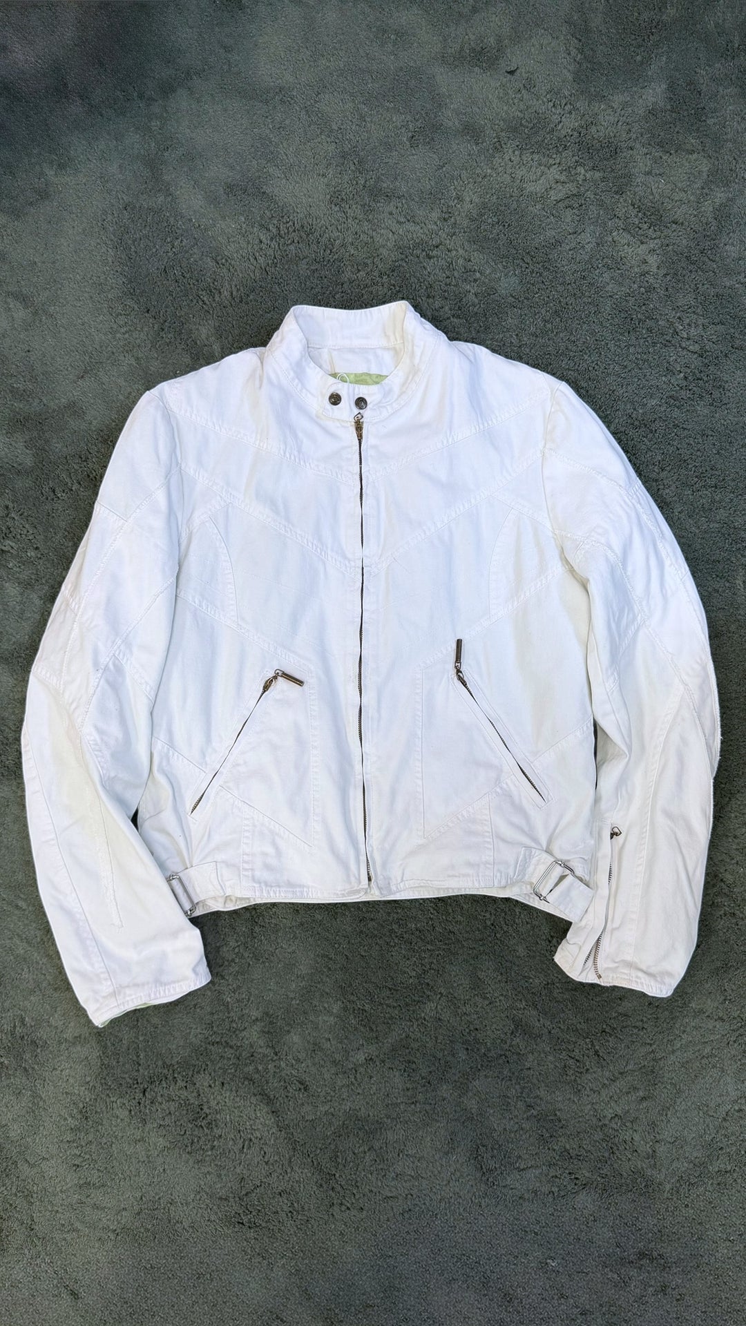 Just Cavalli white cotton biker jacket large