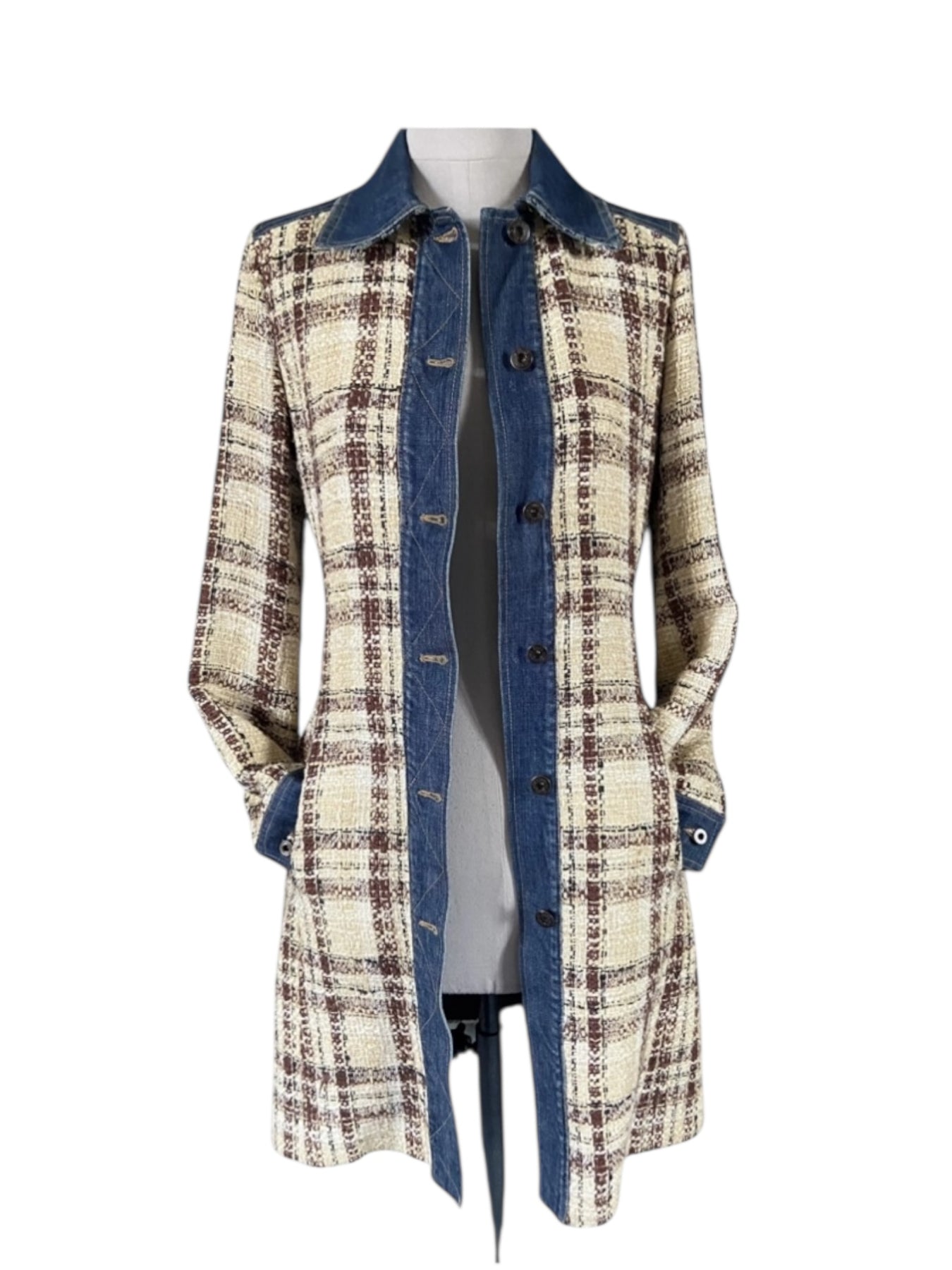 Dolce & Gabbana 2000s Tweed & Denim Contrast Coat Small