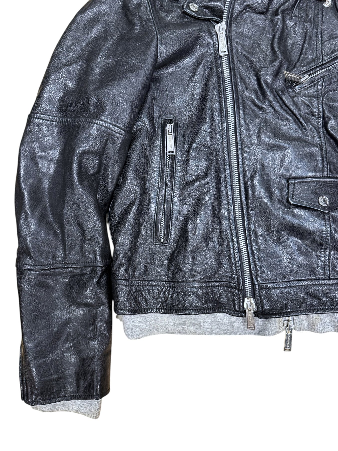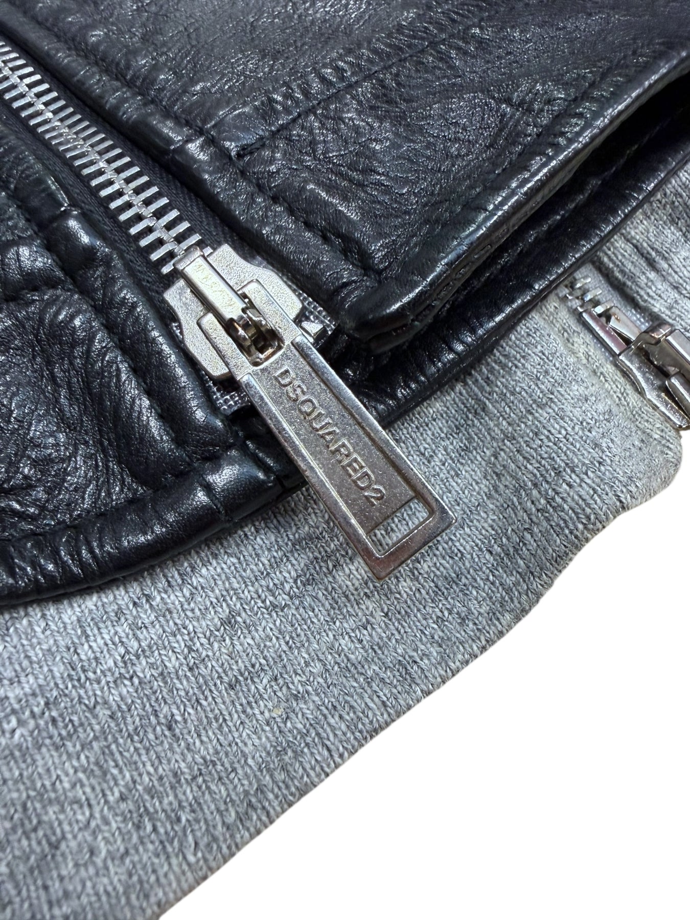 DSQUARED2 Hybrid Leather & Hoodie Biker Jacket Large