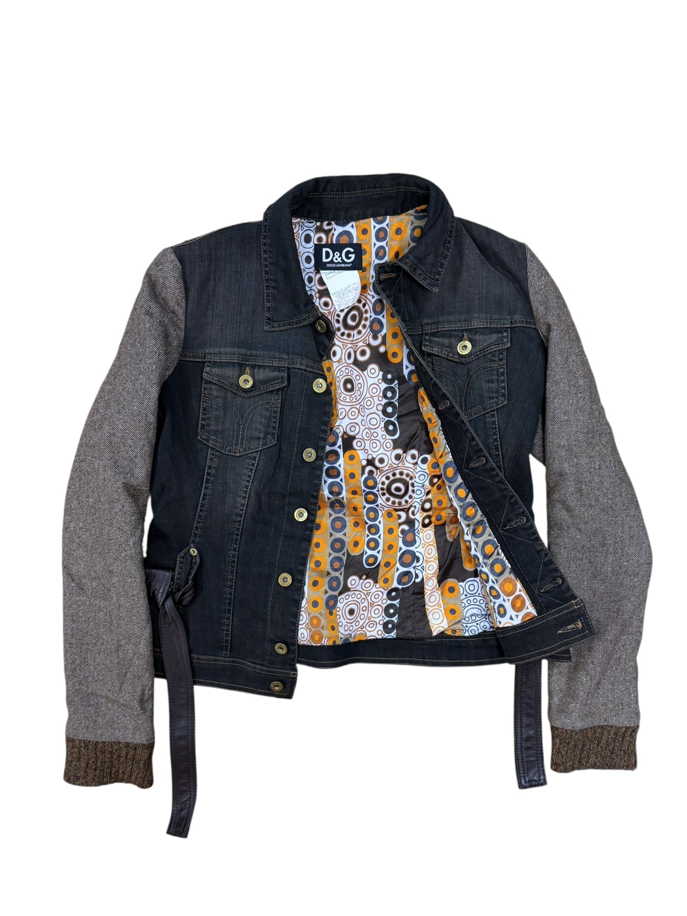 Dolce & Gabbana Black Denim & Wool Sleeve Belted Jacket Small