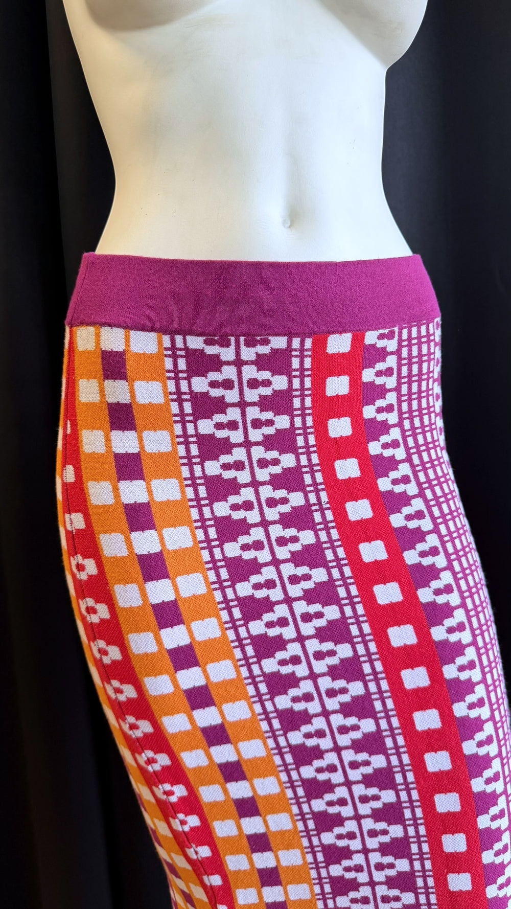 Pinko geometric knit midi skirt multicolor fringe hem small