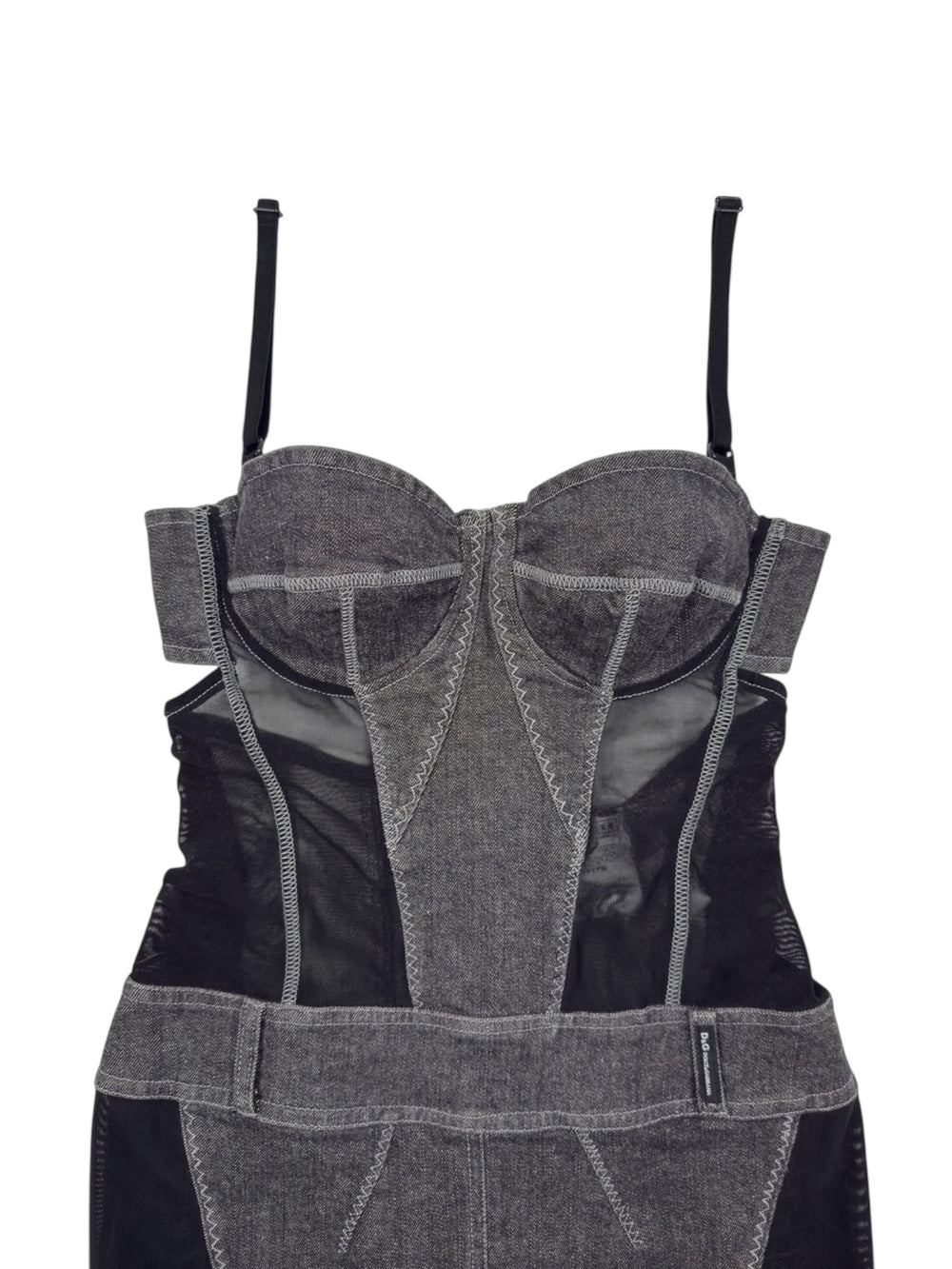 Dolce&Gabbana 2000s denim bustier panel bodycon dress