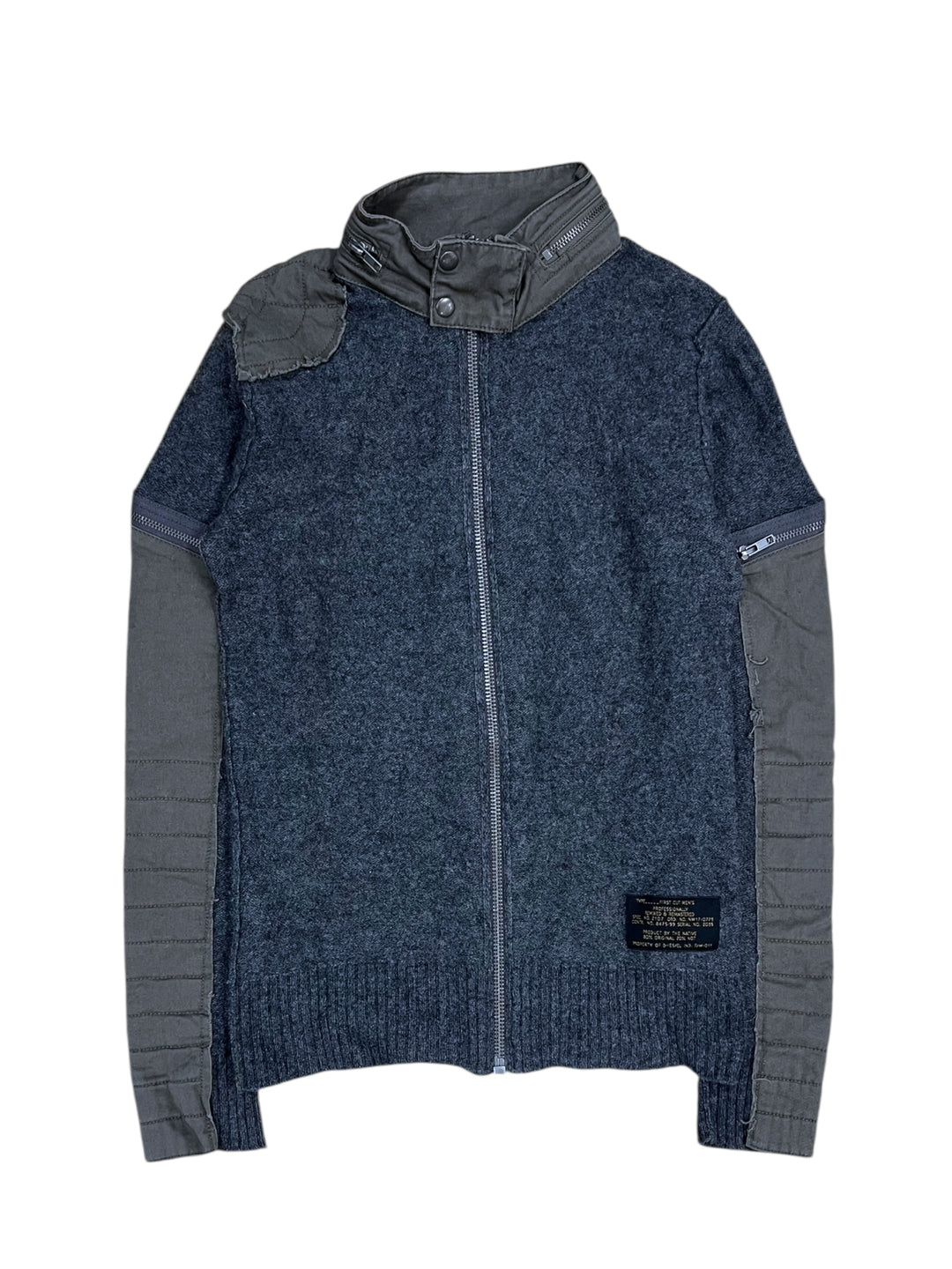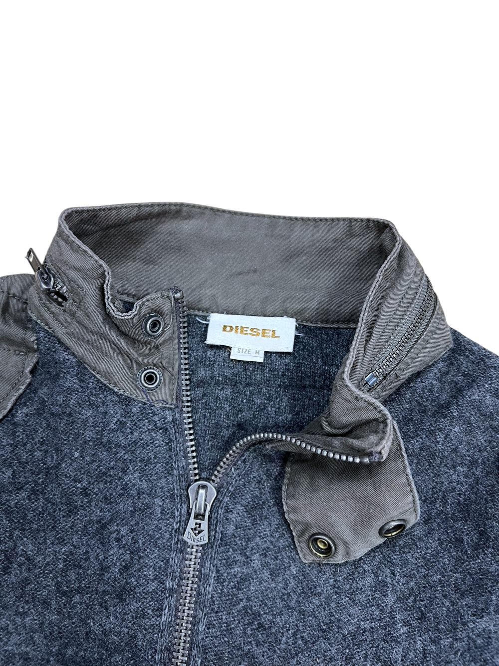 Diesel Military-Inspired Grey Knit & Cotton Panel Zip-Up Jacket Medium Slim Fit