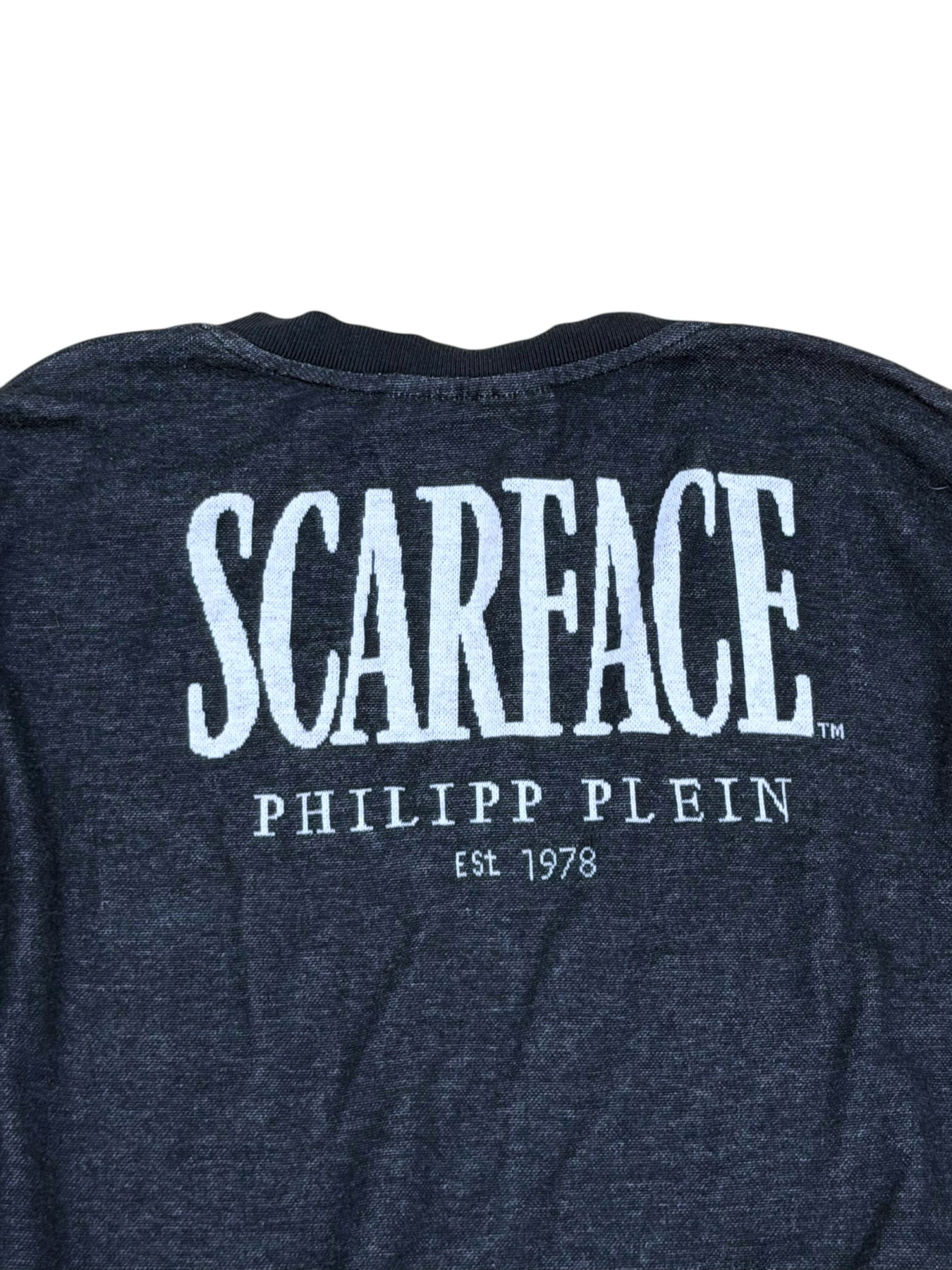 Released in small quantities as part of the Scarface collaboration, merging cinema iconography with Philipp Plein’s dark luxury aesthetic.