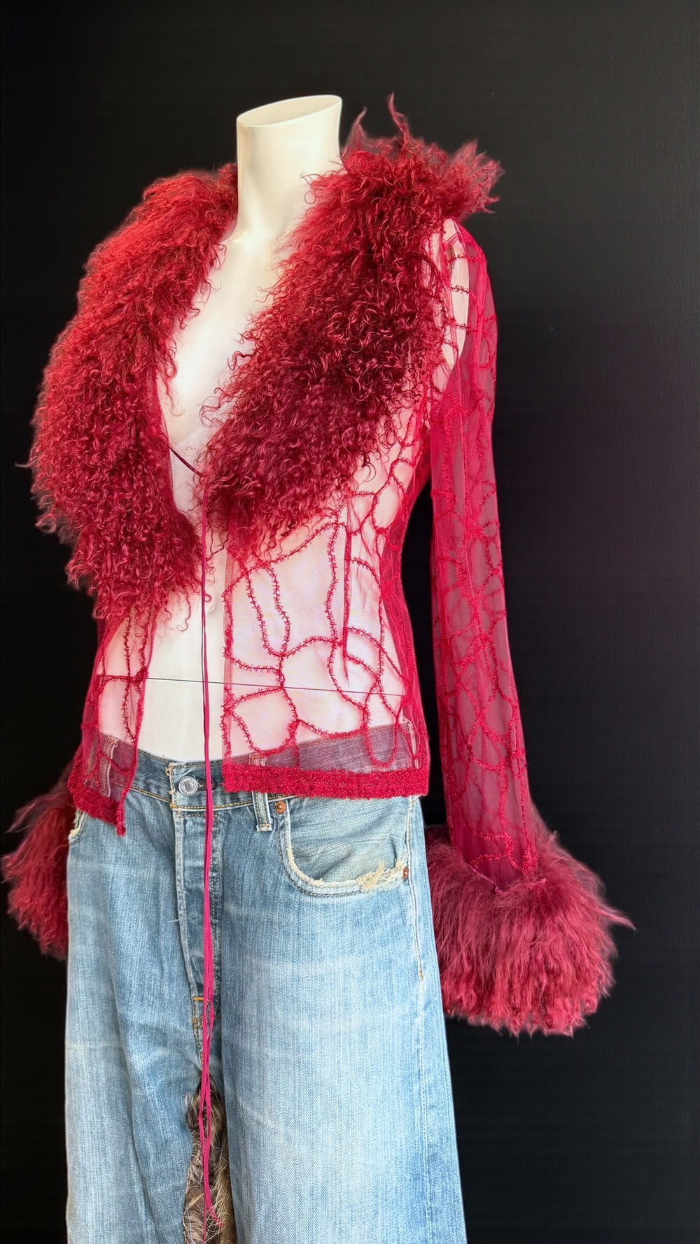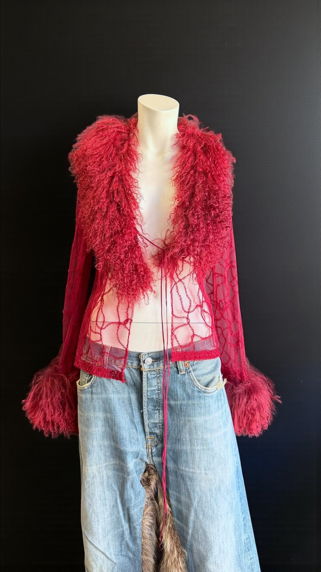 2000s sheer wool blend jacket with curly-fur collar & cuffs small