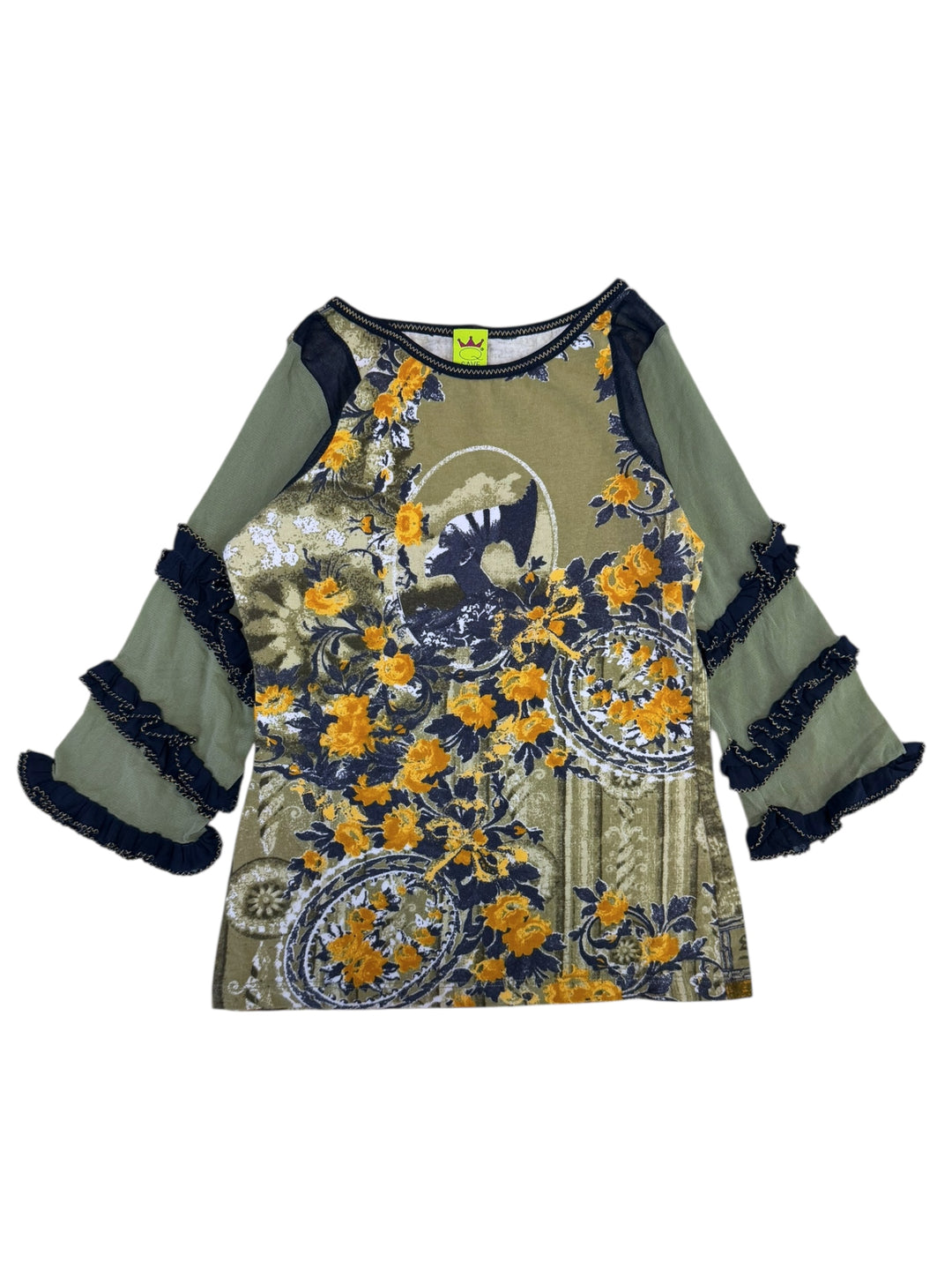 Save The Queen floral ruffle-sleeve top medium