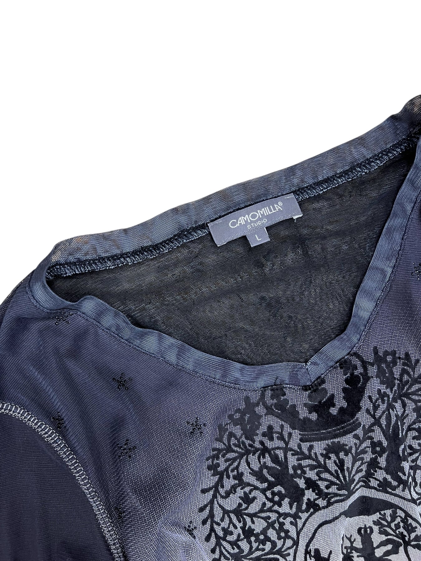 Camomilla Studio Fairy-Tale Mesh Ruched Long Sleeve Top Large